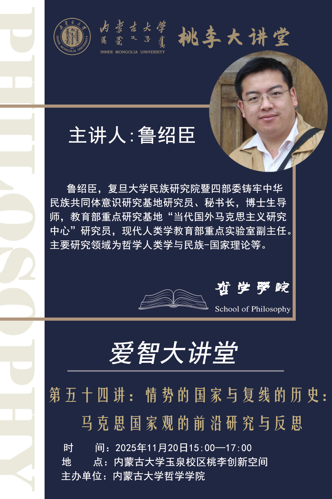 鲁绍臣,复旦大学民族研究院暨四部委铸牢中华民族共同体意识研究基地研究员、秘书长,博士生导师,教育部重点研究基地“当代国外马克思主义研究中心”研究员,现代人类学教育部重点实验室副主任。主要研究领域为哲学人类学与民族-国家理论等。