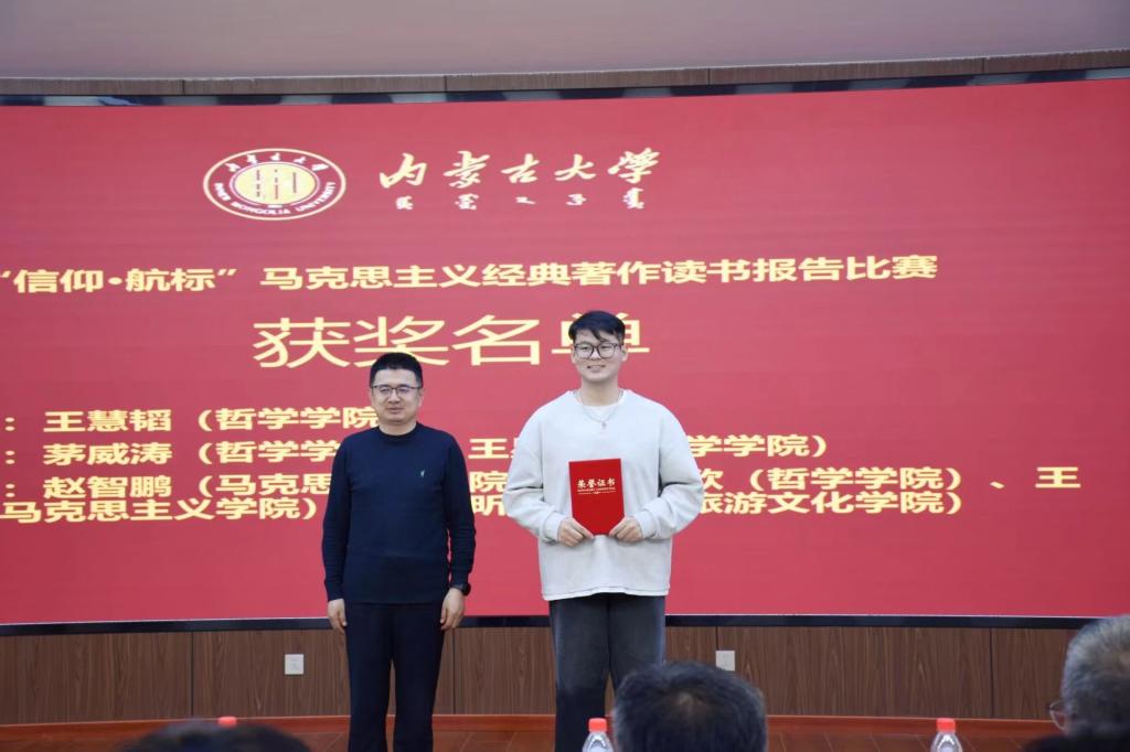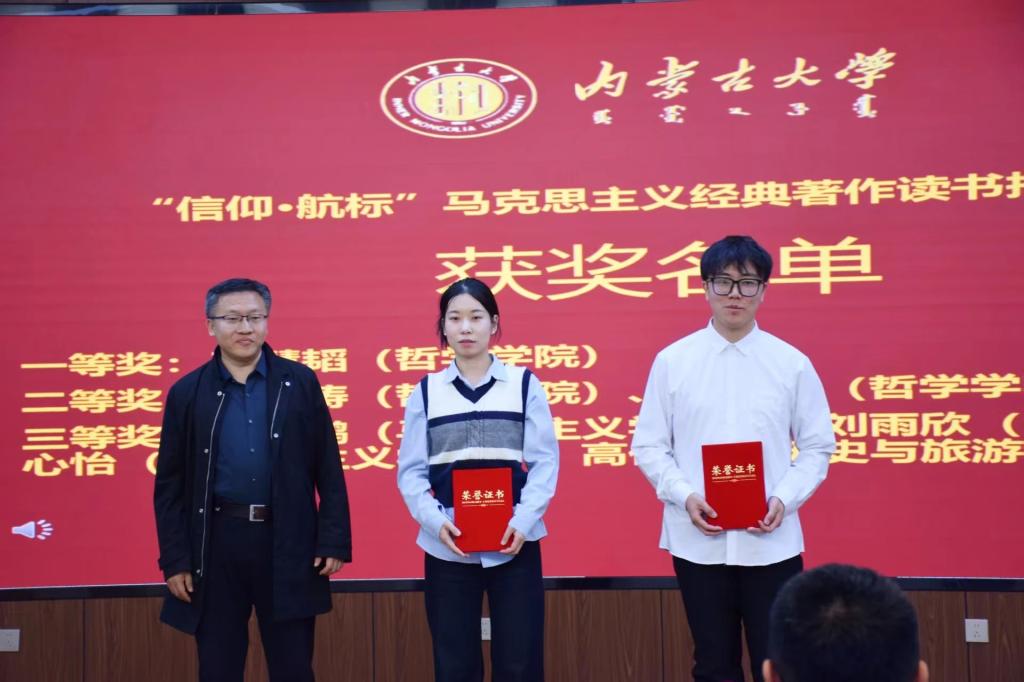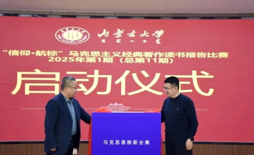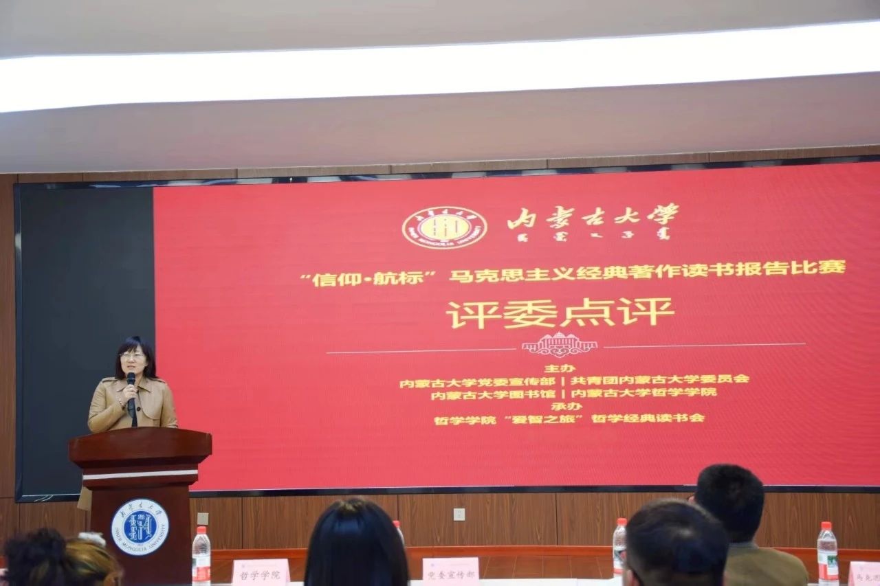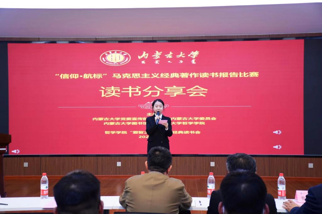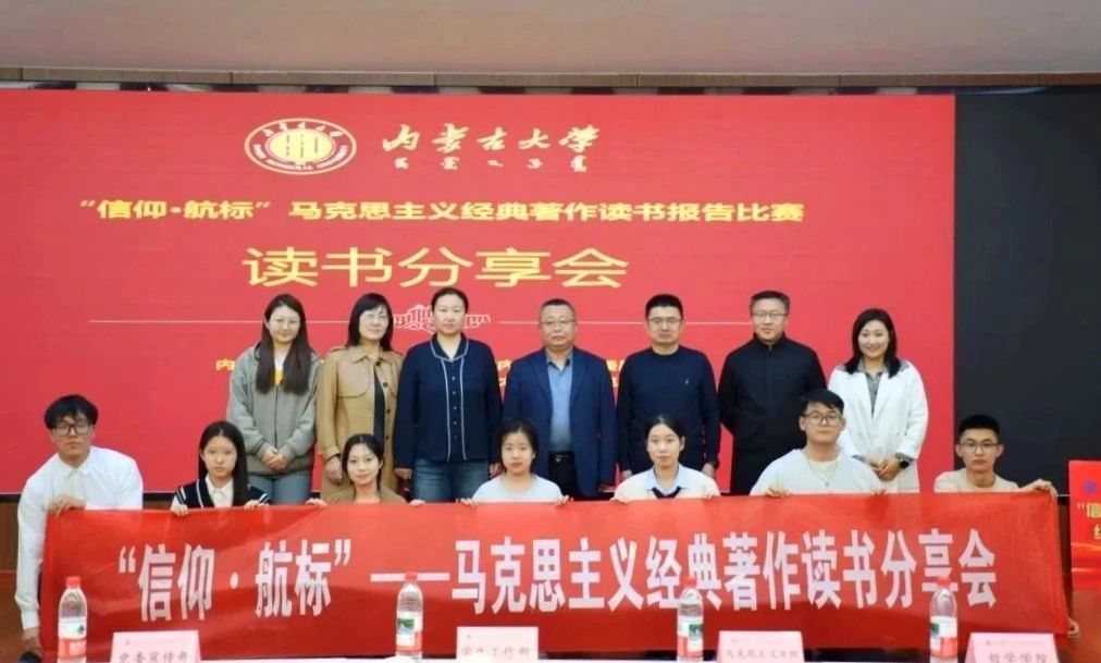 为高举马克思主义信仰航标,锻炼同学们的批判思维能力与精细阅读能力,2025年4月11日下午,哲学学院于内蒙古大学玉泉校区大学生创新创业中心举办“信仰·航标”——马克思主义经典著作读书分享会。