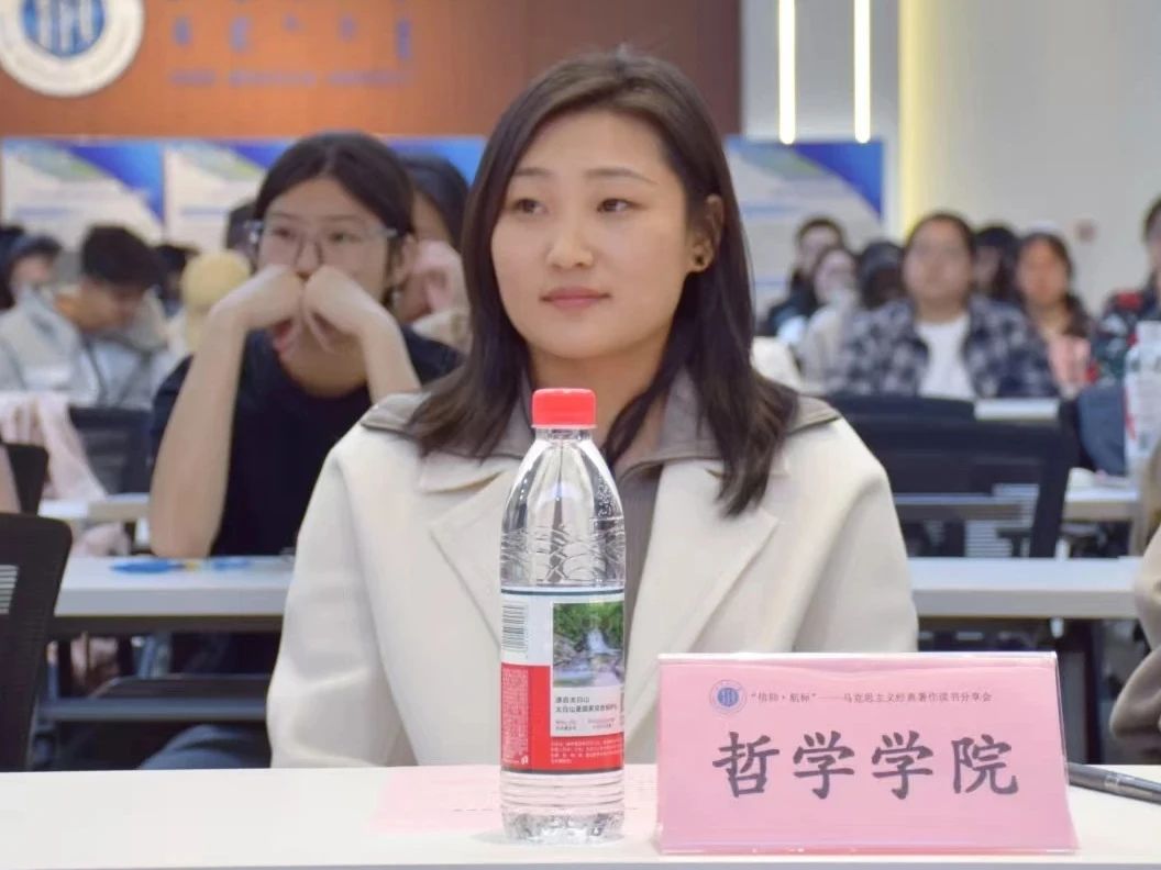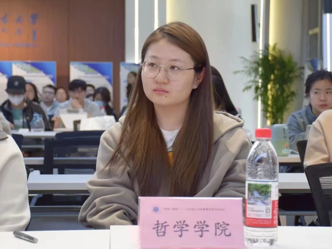 2024级马克思主义哲学研究生王星雨以“中国近代经济结构变革的历史唯物主义阐释——基于《马克思恩格斯论中国》”为题,从历史唯物主义核心要义阐释、变革原因和动力、中国近现代经济结构变革的过程和特点以及影响四个方面进行分享。