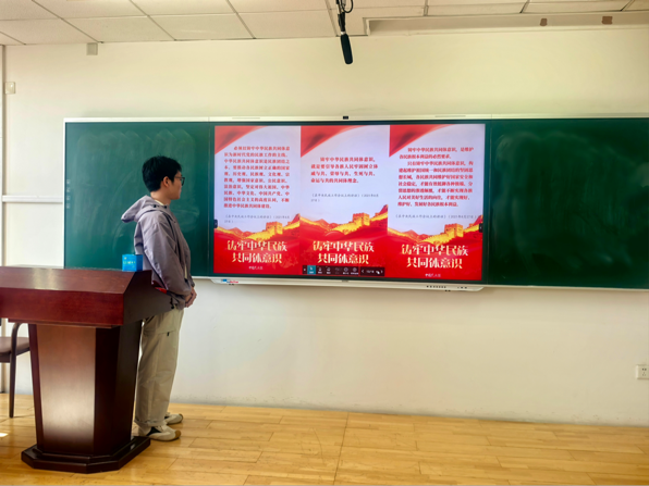 会议伊始,团支部书记郭容熙带领全体团员观看前期拍摄视频并认真学习习近平总书记关于民族工作的重要论述,深入阐释了铸牢中华民族共同体意识的时代价值与现实意义,号召大家为实现中华民族的伟大复兴贡献青春力量。