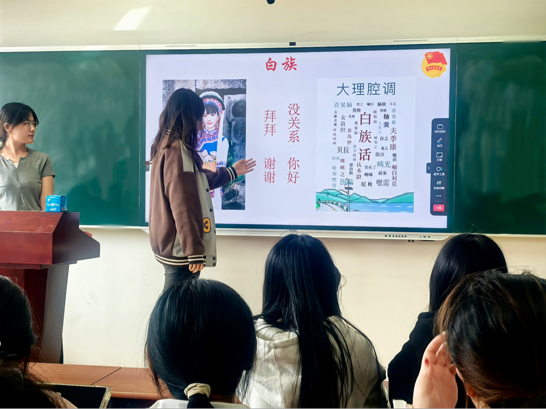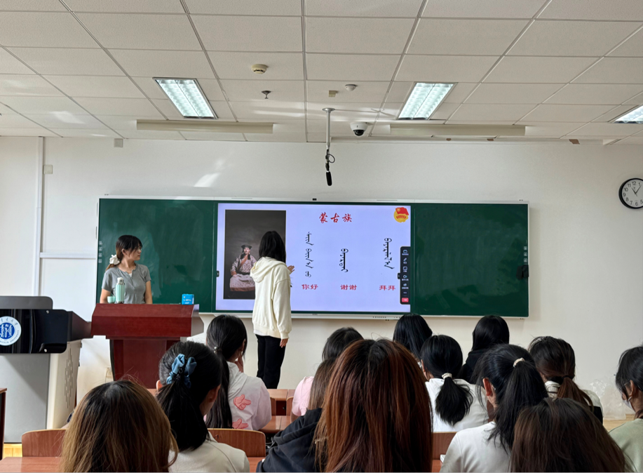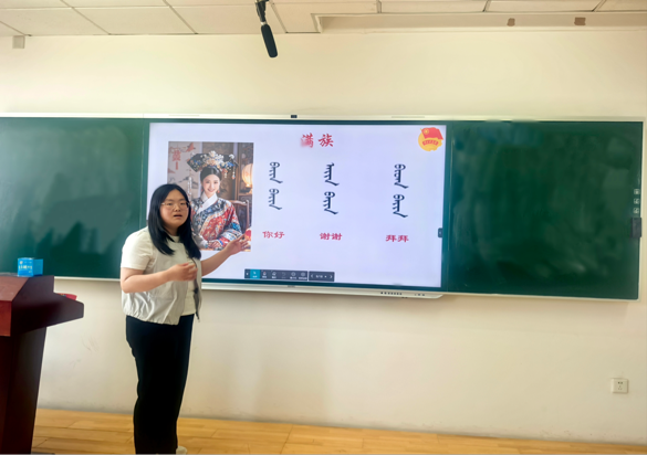 随后,蒙古族同学徐小茹、满族同学张溪月、白族同学赵嘉怡分别介绍了本民族的语言与文化习俗,使团员们在互动体验中增进了对多元民族文化的了解,深刻体会到民族团结的重要意义。