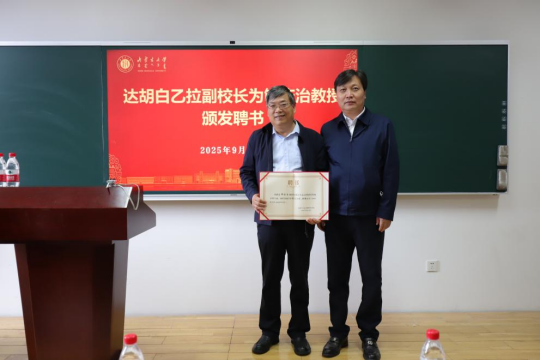 讲座开始前,举行了郇庆治教授受聘内蒙古生态文明基地首席专家和学术委员会主任的聘任仪式。盛立民院长简要介绍了由哲学学院主持建设的自治区哲学社会科学重点研究基地(培育)——内蒙古生态文明基地的情况,对郇庆治教授长期以来的大力支持和倾情投入表示感谢。内蒙古大学副校长达胡白乙拉教授为郇庆治教授颁发了聘书。