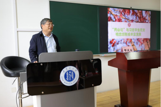 9月16日下午,我院邀请北京大学习近平生态文明思想研究中心主任,北京大学马克思主义学院教授、博导,教育部长江学者特聘教授郇庆治教授作了题为“‘两山论’与习近平生态文明思想的形成丰富发展”的学术讲座。在讲座开始前举行了内蒙古生态文明研究基地首席专家聘任仪式。哲学学院院长盛立民主持本场讲座和聘任仪式。