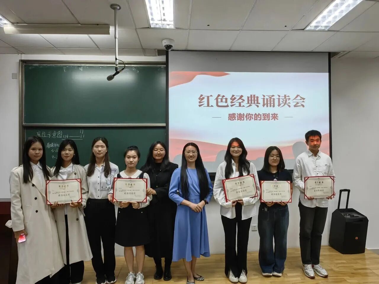 活动现场还设置 “解码经典 趣味问答” 与 “即兴声动 学子风采” 环节。同学们踊跃上台,深情朗诵《沁园春・雪》等经典作品,个个情绪激昂、表现亮眼,既展现出扎实的语言功底,也传递出深沉的红色情怀。热烈氛围中,大家对红色经典的理解愈发深刻。现场同步开启抽奖环节,不仅点燃了同学们参与互动问答的热情,更将整场活动的氛围推向高潮。