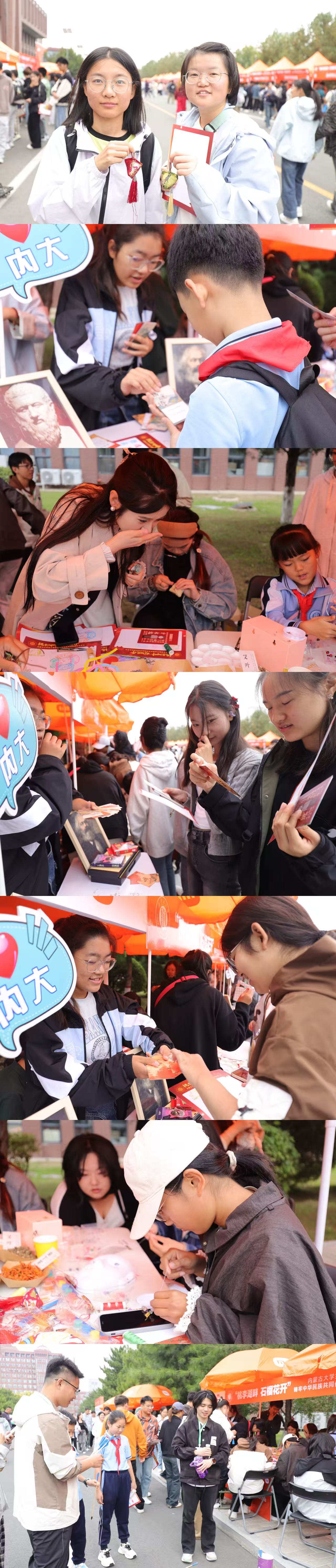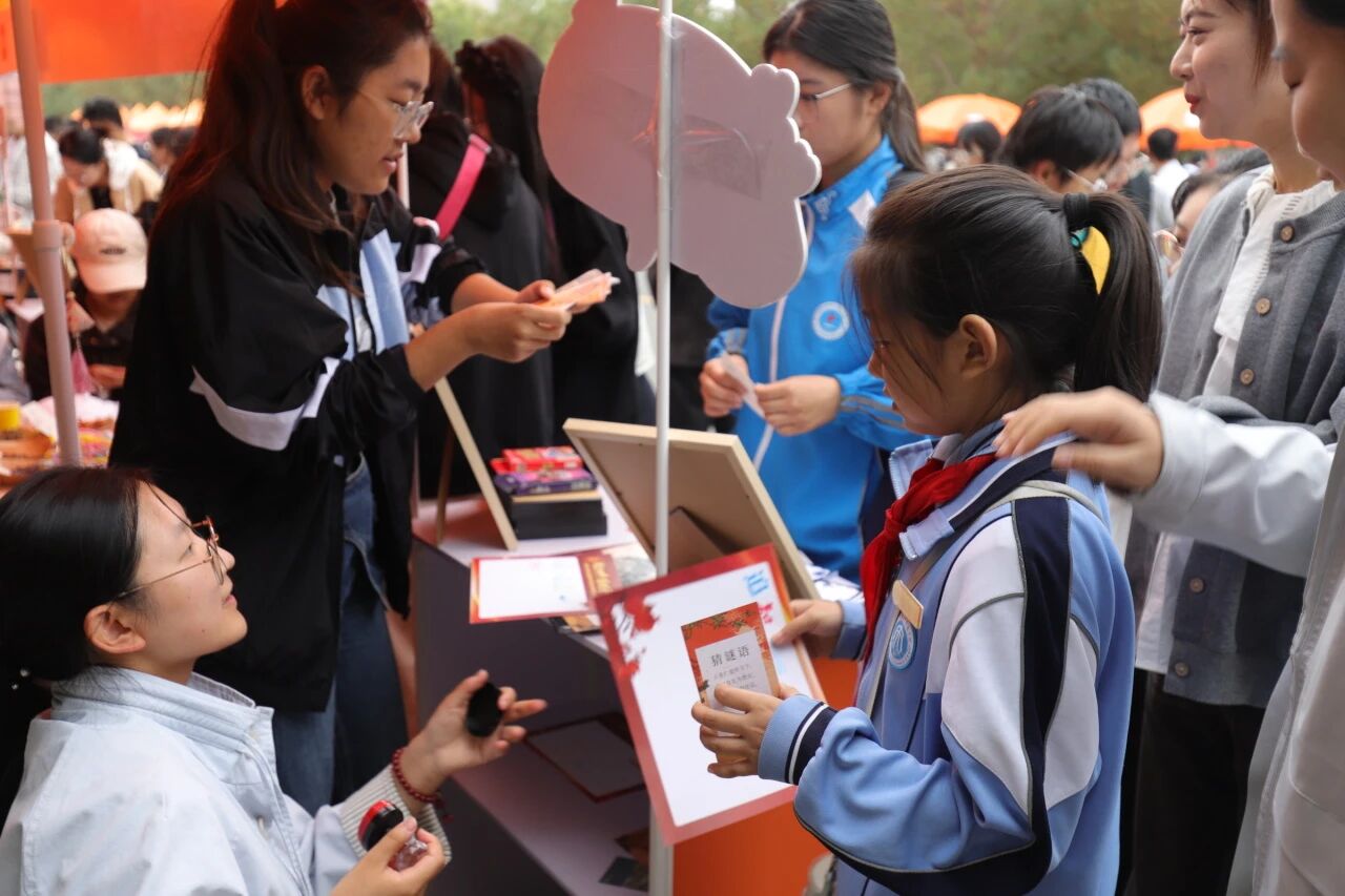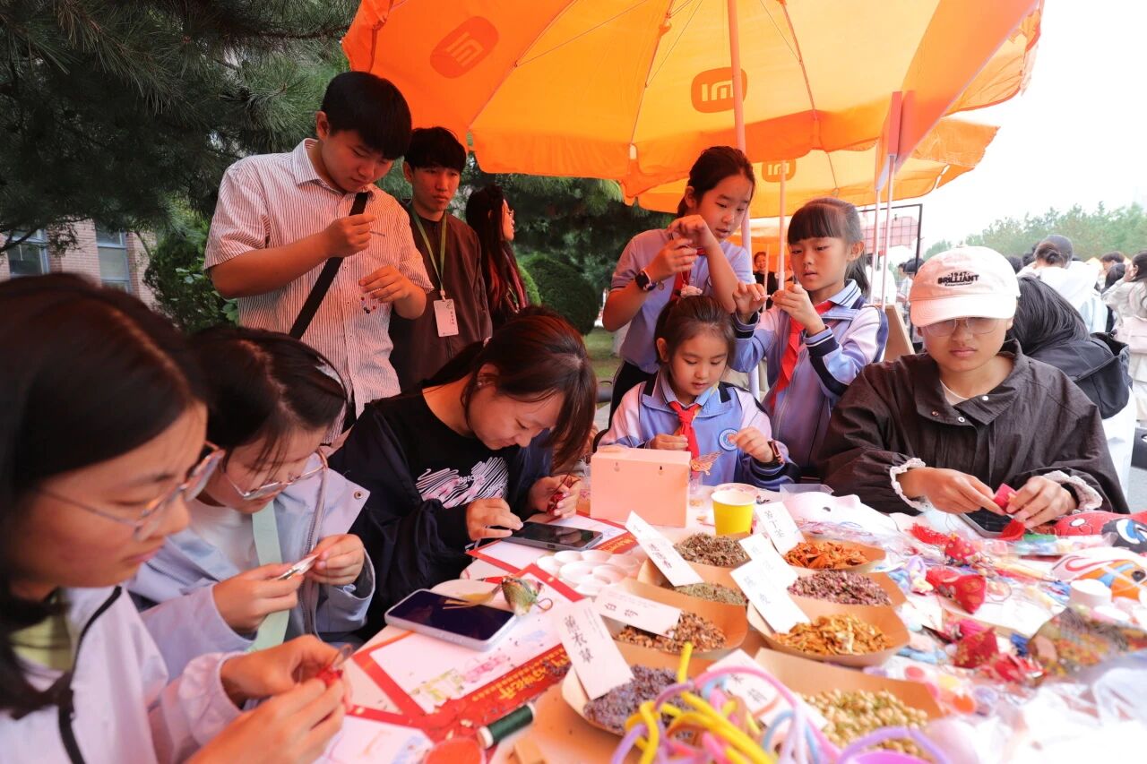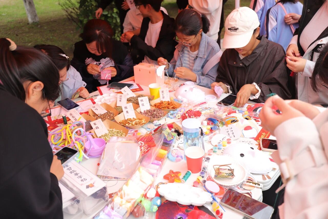 在哲学学院搭建的帐篷前,同学们制作的香囊、手串以及书签成为了承载文化与情谊的“小小信物”。在制作过程中,同学们以实践传文化,以哲思融同心,将哲学智慧融入手工创作,既以手工活动滋养心灵,又借哲学视角深化对优秀文化的理解,实现知行合一,让文化体验更有深度、精神共鸣更有温度。