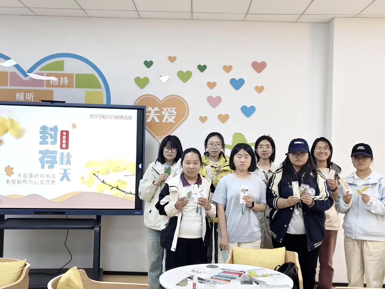 秋意浸染大地,也适合沉淀内心。9月25日晚,哲学学院在玉泉校区西院“一站式”学生社区阳光驿站,举办“封存秋天,书签寄意”主题心理活动,邀同学们暂别忙碌,将秋之美好与心底期许封存在书签中。