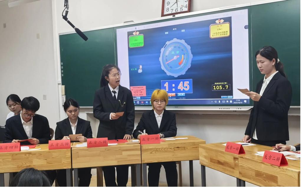 第三场围绕“AI技术的应用削弱/增强大学生的创新能力”展开,双方就AI工具对思维惰性的影响、创新效率的提升等核心争议点,结合论文写作、学科竞赛等实例展开激烈辩驳。