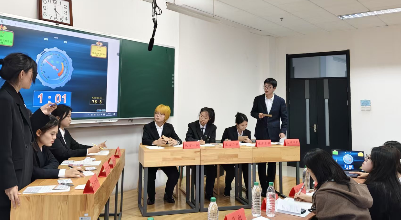 经初赛选拔,2025级的12名优秀辩手脱颖而出,他们组成3支队伍,围绕三个时代热点与青年关切的辩题展开论述。首场对决以“法律之外的道德审判有利/不利于社会稳定”为辩题,正方强调道德审判对公共秩序的补充约束作用,反方则从避免舆论暴力、维护司法权威角度提出质疑,引发全场对于程序正义与实体正义如何同一的思考。