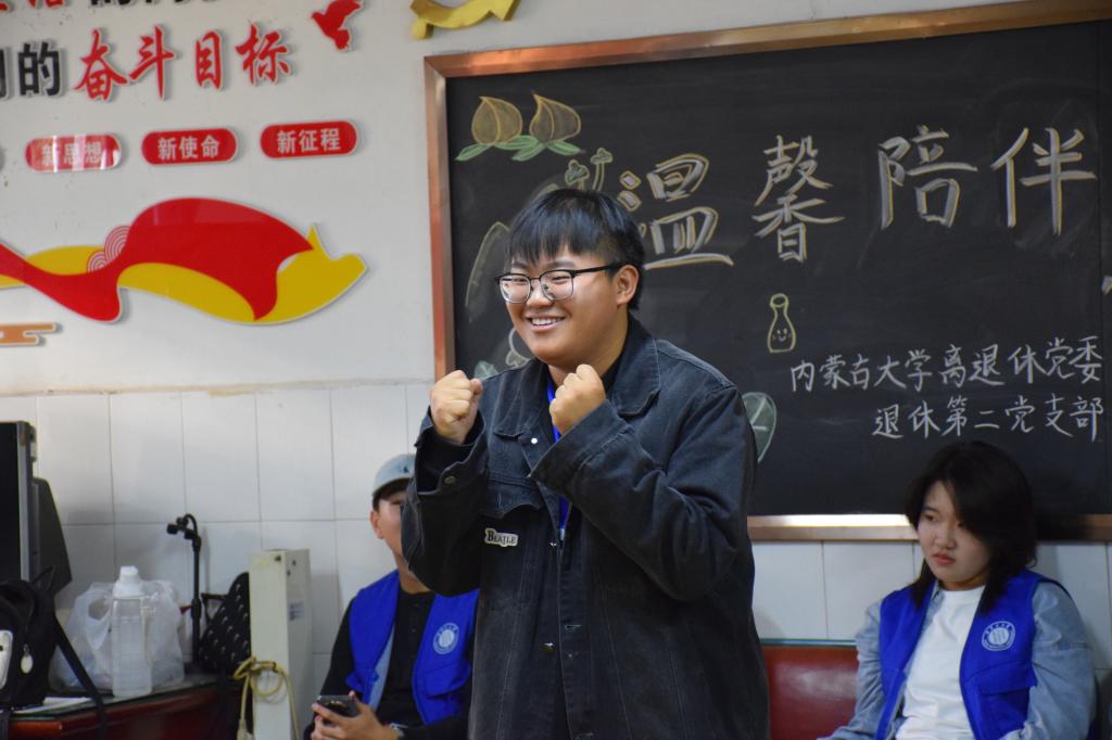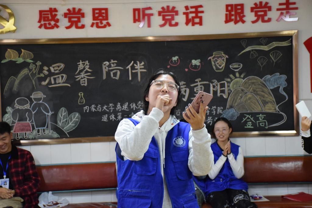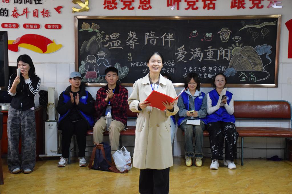 青春传暖意,敬老庆重阳。为践行尊老敬老爱老传统美德,推动形成以小善暖人心、以行动传善意的敬老爱老浓厚氛围,哲学学院青年志愿者服务队联合内蒙古大学离退休党委退休第二党支部、内蒙古大学离退休人员工作处、昭君路办事处桃李社区,组织41名志愿者于2025年11月1日下午在农校小区老年活动中心开展以“温馨陪伴,爱满重阳”为主题的志愿服务活动,内蒙古大学离退休党委书记兼内蒙古大学离退休人员工作处处长郭志勇同志、内蒙古大学离退休人员工作处综合服务科副主管刘展宁同志等领导莅临本次活动。