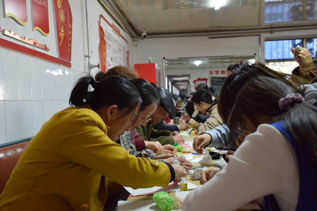 毛线画手工创作环节,志愿者为老人们准备了彩色毛线、画框、胶水等材料,手把手指导大家制作毛线画。捻毛线,拼轮廓,指尖缠绕温情;贴纹理,构图景,巧思织就心意。一幅幅色彩斑斓的毛线画,不仅承载着老人们的创意与童心,更凝结着志愿者与老人之间的温情。