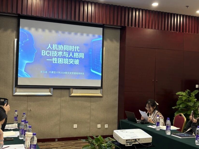 2025年12月6日,中国自然辩证法研究会于北京隆重举办“纪念恩格斯《自然辩证法》手稿出版100周年”学术研讨会。在“自然辩证法与人类未来文明”分论坛上,内蒙古大学哲学学院2024级文史哲基地班本科生贠玉涵同学作为全场唯一登台发言的本科学生,以题为《脑机接口技术与人格同一性的辩证关系研究》的前沿学术报告,引发了与会专家学者的关注与探讨。