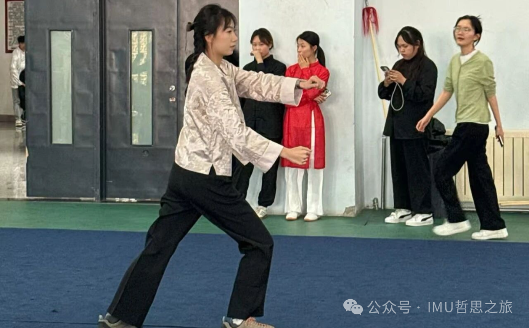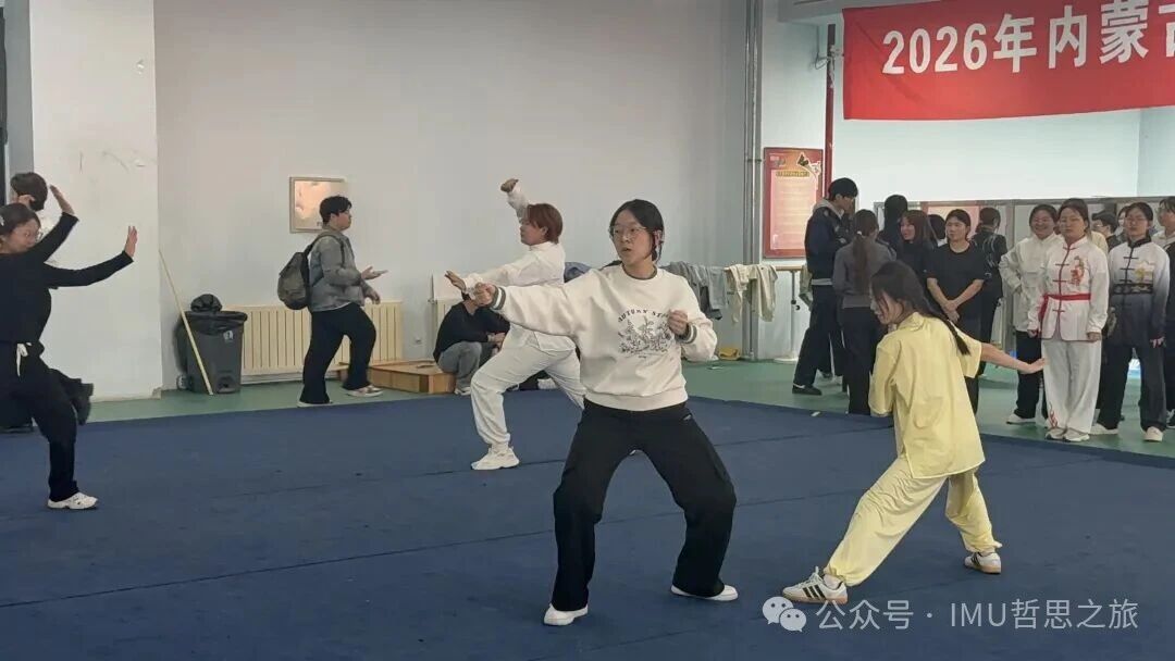 2026年3月19日12:30,内蒙古大学校园奥林匹克运动会——传统武术交流大会在内蒙古大学玉泉校区文体馆一楼举行。我院2023级哲学专业本科班马子涵,2024级政治学、经济学与哲学专业本科班谢民俊、王俏然、张溪月、王娜,2025级政治学、经济学与哲学专业本科班阿丽玛,2025级汉语言基地专业本科班马鹏兰、刘毅然、蒋媛婧参与本次传统武术交流大会。