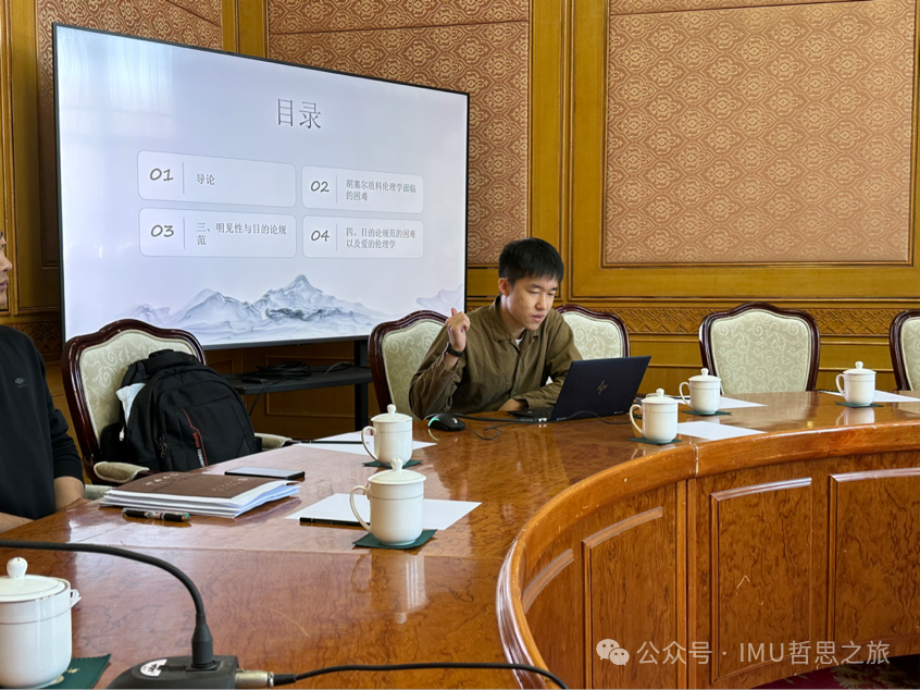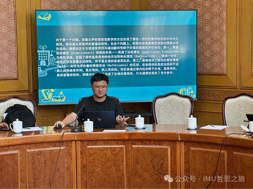 内蒙古大学的周振权老师作了题为《现象学伦理学的两种可能——价值论的质料伦理学或爱的义务论伦理学》的报告。探讨胡塞尔伦理学的性质与定位问题。报告指出,胡塞尔伦理学长期难以归类,虽被统称为现象学伦理学,但其内涵兼具人格伦理学、美德伦理学、质料伦理学、形式伦理学与情感伦理学等多重面向。报告结合学者Peucker的观点,指出胡塞尔伦理学难以归入美德伦理学、义务论或后果论三大类型,却同时包含其要素,凸显其独特性。进一步,报告从思想发展史角度分析,认为胡塞尔前期受亚里士多德与弗朗茨·布伦塔诺影响,形成质料价值伦理学;后期则转向类似伊曼努尔·康德意义上的人格伦理学。针对学界将其视为不一致的看法,报告提出,有必要重新审视这些差异,探讨其内在统一性,从而为理解胡塞尔伦理学提供更为系统的理论框架。