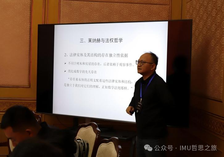 开幕式后进入报告环节。中山大学(珠海)的钟汉川老师作了题为《价值与正当性——从舍勒对康德的批评出发》的报告。在舍勒对康德的批评之中,Recht(正当)被理解为奠基于价值论,而不是与普遍法则相关的合法则性的。这里的交锋不仅蕴含了后来元伦理学发展的主题,即善与正当及其关联的问题,也体现了康德哲学向现象学发展的某些思路。尽管莱纳赫很好地主题化了正当(Recht)问题的哲学研究,但是胡塞尔关于正当(Recht)问题的考察可能提供了更宽的思路,在康德和舍勒的方案之间达成了某种沟通和平衡。本报告试图展示和评判康德哲学和(前述)现象学之间的这种发展思路,以期更好地阐释关于法权问题的多重意蕴。