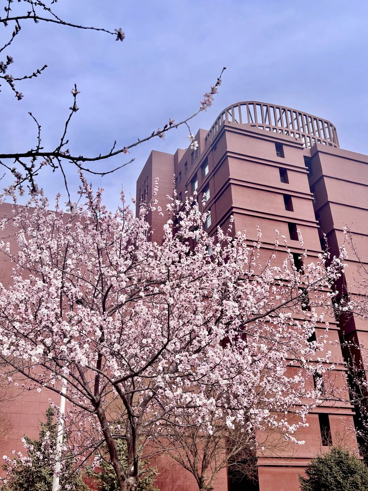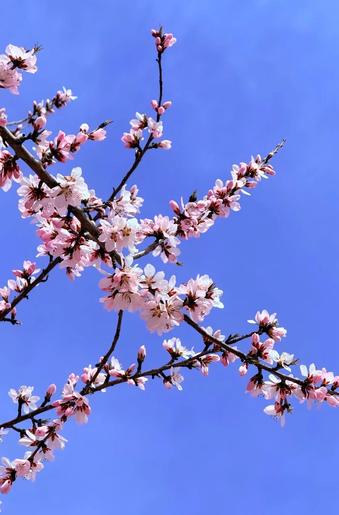 春风拂过枝头,桃花映着澄澈蓝天。天光湛蓝,万物舒展,满院生机,都在这一抹清朗里绽放。