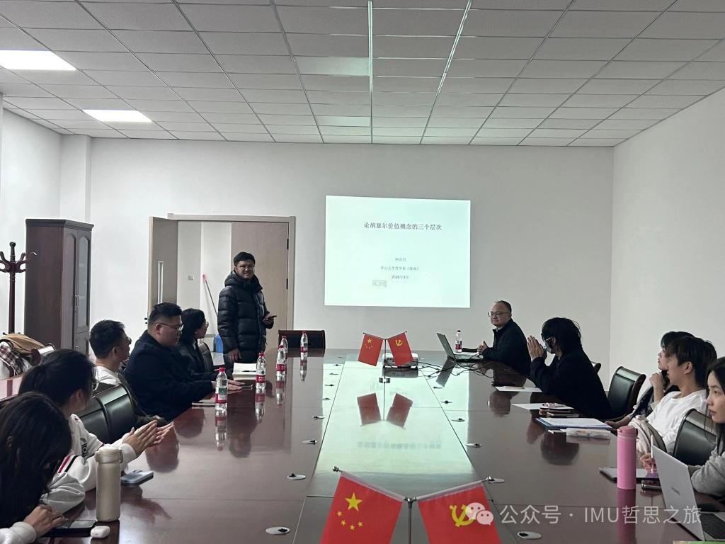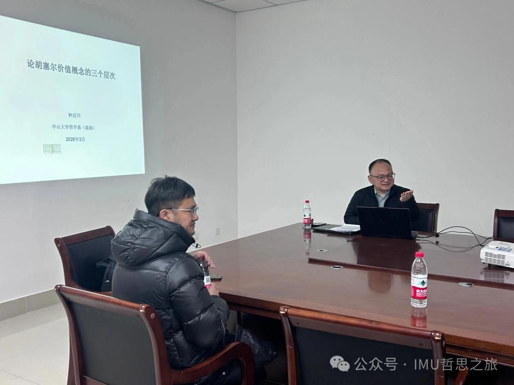 2026年3月20日,我院特邀中山大学哲学系(珠海)博士生导师钟汉川教授来到内蒙古大学,在玉泉校区艺术楼大会议室作题为《论胡塞尔价值概念的三个层次》的专题讲座。哲学学院周振权老师主持本场讲座。同时,我院还特邀河南大学曾云教授,中山大学博士后左帅等做评议人。