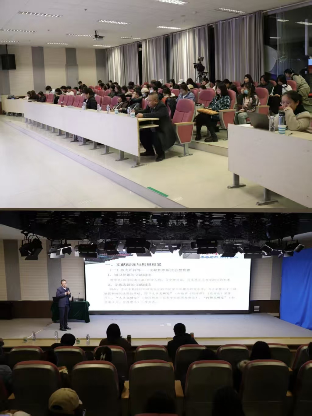 王海锋教授聚焦人文社会科学研究生论文的写作问题,强调论文写作的关键在于思想积累,即在文献积累和思想积累、学术生活积累的基础上实现思想的创造,撰写高水平的学术理论文章。王海锋教授从文献阅读与思想积累、读书笔记与文献积累、学术期刊与思想积累、热点问题与思想积累、文献检索与思想积累、学术互动与思想积累、生命体验与思想积累七个方面讲授了学术论文撰写的具体方法,为哲学学院师生带来了精彩纷呈的一课。