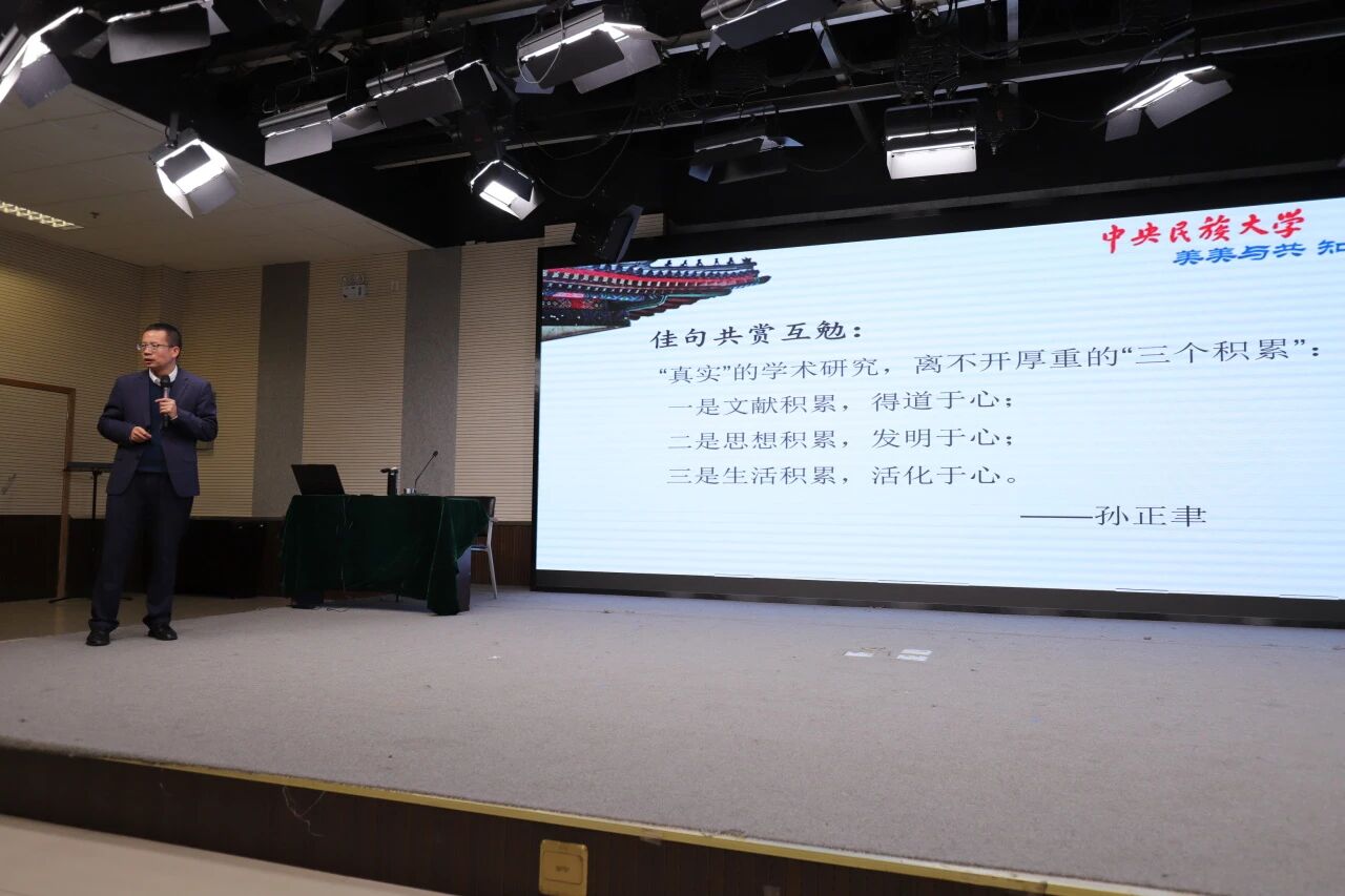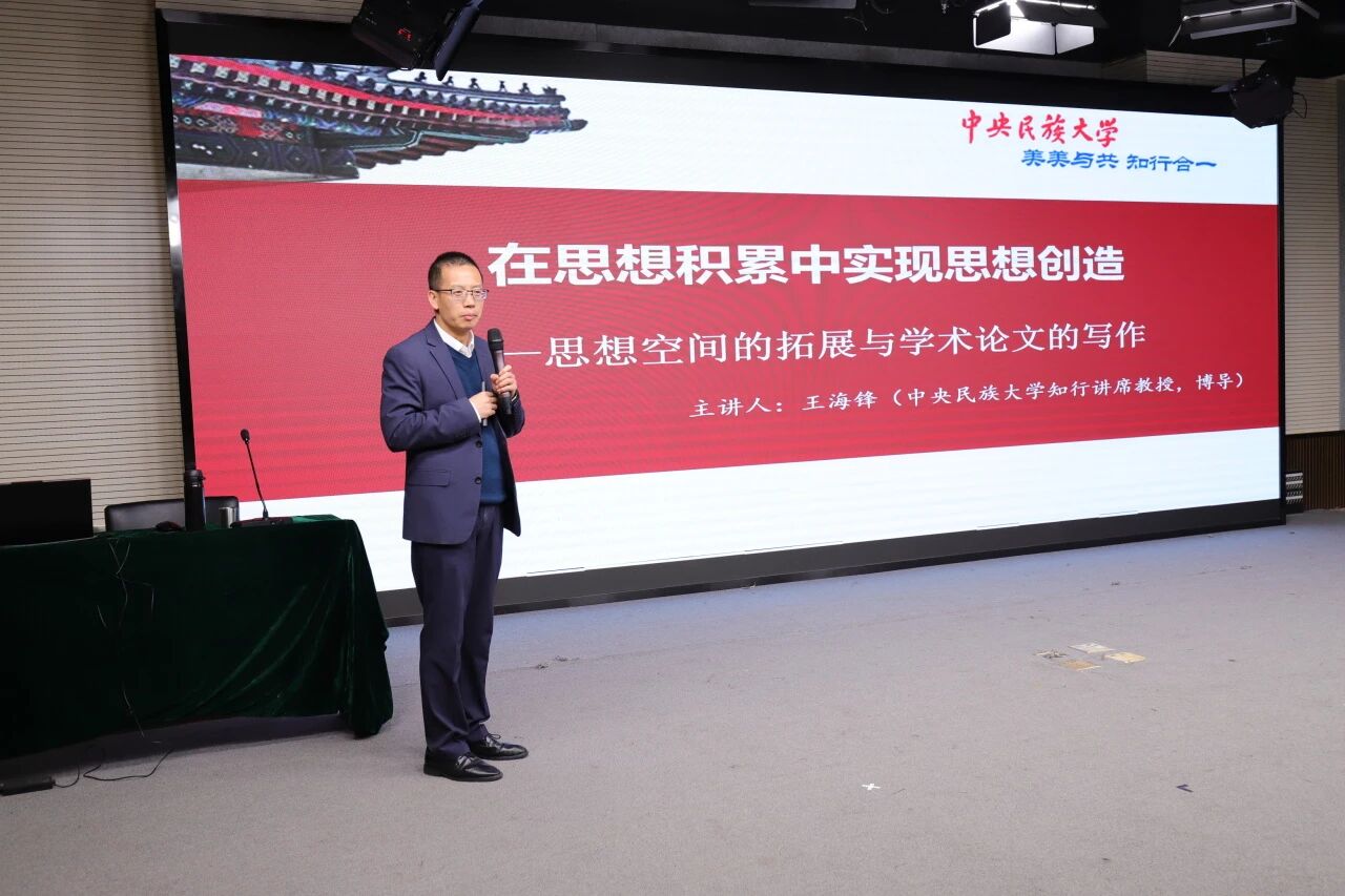 2025年11月6日下午,我校特邀中央民族大学知行讲席教授、哲学与宗教学学院党委书记兼副院长王海锋来到内蒙古大学,在卓越楼一楼东报告厅作题为《在思想积累中实现思想创造——思想空间的拓展与学术论文的写作》的讲座。哲学学院院长盛立民主持本场讲座。