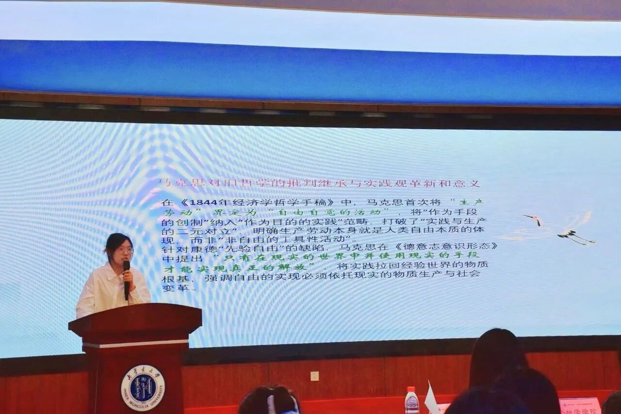 内蒙古大学2024级文史哲基地班贠玉涵围绕 “实践是必然王国向自由王国转变的关键”,系统阐释马克思主义实践理论对传统哲学的超越,明晰自由与必然的辩证关系。
